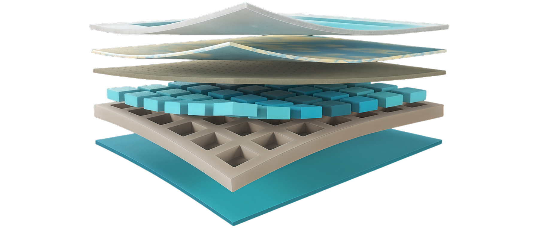 Unlike conventional mattresses that rely on stacked layers, Ergoshell™ uses a structured, zoned system that adapts to different parts of the body.